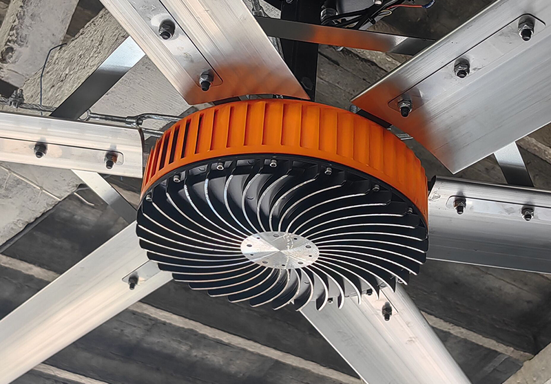 本司設(shè)計的永磁同步直驅(qū)電機(jī),具有能耗低、發(fā)熱低、不退磁等優(yōu)點;同時具有防塵、防濺的功能,適用于大部分室內(nèi)生產(chǎn)場所??朔鹘y(tǒng)工業(yè)風(fēng)扇使用的異步減速機(jī)笨重、噪音高、能耗高、后期減速箱易磨損、壽命短、維護(hù)成本高等缺點。當(dāng)春秋季節(jié)轉(zhuǎn)速可低于35轉(zhuǎn)時,平均功率不到200W,屬于真正意義上免保養(yǎng)、節(jié)能環(huán)保型工業(yè)風(fēng)扇。